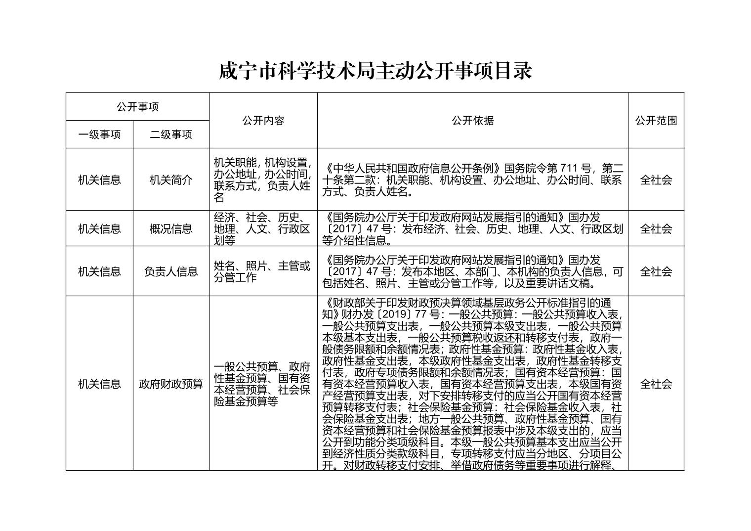名       称: 咸宁市科学技术局主动公开事项目录 发布日期: 2025年12月15日